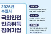 한방통신사 신유철기자 기자 | 수원특례시가 관내 중소기업이 국외 안전인증 취득하는 데 소요되는 비용을 지원한다. 수원시는 24일까지 ‘2026년 국외 규격인증 취득 지원사업’에 참가할 창업·중소·제조기업 8개 업체를 모집한다. 인증비·시험비·컨설팅비 등 안전인증 취득에 필요한 총비용의 80%를 실비로 지원한다. 기업당 최대 2개 제품의 인증 취득을 지원하고, 지원 한도는 기업당 440만 원이다. 지원 분야는 미국 안전인증(UL·FCC·FDA), 유럽 안전인증(CE) 등 436개 규격이다. 제품안전인증이 아닌 아이에스오(ISO) 인증은 제외된다. 수원시 관계자는 “중소제조기업에게는 국외 안전인증을 취득하는 과정이 수출 장벽처럼 느껴질 정도로 쉽지 않다”며 “기업이 교역 대상국의 안전 규제에 선제적으로 대응할 수 있도록, 국외 안전인증 취득을 지원하겠다”고 말했다. [뉴스출처 : 경기도 수원시]