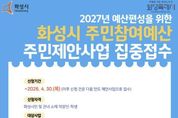 한방통신사 신유철기자 기자 | 화성특례시는 2일부터 4월 30일까지 ‘2027년 예산 편성을 위한 주민제안사업’신청을 받는다고 2일 밝혔다. 주민제안사업은 주민의 예산 편성 과정 참여를 보장하고 주민이 원하는 현안사업을 예산에 반영해 재정 민주주의를 실현하기 위한 주민 참여예산제 일환으로 추진된다. 주민제안사업 제안은 화성특례시 거주자, 기업 재직자, 학교 재학생(청소년시설 이용자 포함)이면 누구나 참여할 수 있으며, 다수의 주민에게 혜택을 줄 수 있는 사업이거나 생활 속 안전사고 예방과 관련 있는 사업 등을 제안하면 된다. 사업 제안 유형은 총 4개 분야로, ▲시청 및 구청 사업부서 소관 사업(사업당 최대 3억 원) ▲지역 밀착형 읍면동 단위 사업(사업당 최대 5천만 원) ▲청년참여예산(사업당 최대 5천만 원) ▲청소년참여예산(5백만 원~3천만 원)이다. 특히, 청년 및 청소년참여예산 분야는 다양한 세대의 참여를 독려하기 위해 올해 신설한 분야로, 수혜자 다수가 청년·청소년이거나 청년·청소년 문제 해결을 주목적으로 하는 사업을 제안하면 된다. 주민제안사업으로 최종 선정된 사업은 202
