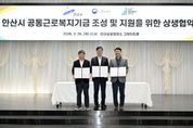 한방통신사 신유철기자 기자 | 안산시는 지난 26일 안산상공회의소 그레이트홀에서 경기지방고용노동청 안산지청, 안산시 공동근로복지기금 1호 법인과 함께 ‘안산시 공동근로복지기금 조성 및 지원을 위한 상생협약’을 체결했다고 27일 밝혔다. 이번 협약은 지역 중소기업과 노동자가 함께 참여하는 공동근로복지기금 조성을 통해 대·중소기업 간 복지 격차를 완화하고, 상생과 연대의 노동환경을 조성하기 위해 마련됐다. 앞서 시는 지난해 7월 ‘안산시 공동근로복지기금 지원 조례’를 제정하고, 기초자치단체 최초로 공동근로복지기금 지원사업을 시행했다. 이는 지방정부와 중앙정부, 기금법인이 함께하는 3자 협력 모델을 구축했다는 점에서 의미가 있다. 이날 협약식에는 이민근 안산시장을 비롯해 양승철 경기지방고용노동청 안산지청장과 장현준 기금법인 대표, 참여기업 관계자 등 100여 명이 참석한 가운데 공동근로복지기금 사업 출범을 기념하고 상생 협력 의지를 다졌다. 협약에 따라 안산시는 공동근로복지기금 조성 및 운영을 위한 행정·재정적 지원을 담당하고, 경기지방고용노동청 안산지청은 ▲정책 반영과 제도 개선 ▲참여기업 확대 및 우