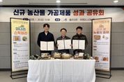 한방통신사 신유철기자 기자 | 시흥시 농업기술센터는 지난 1월 30일 센터 내에서 지역 농산물을 활용한 ‘신규 농가공제품 개발 성과공유회 및 기술이전 업무협약식’을 열었다. 이번 행사는 지난 2025년 3월부터 12월까지 약 10개월간 시흥시 농업기술과와 지역 농가가 협력해 추진한 농산물 가공 제품 연구개발 성과를 공유하고, 개발 기술의 현장 적용 과 실용화를 촉진하기 위해 마련됐다. 이번에 개발된 제품은 총 2종이다. ▲‘감자누룽지과자’는 시흥 친환경 감자와 쌀, 연근을 최적의 비율로 배합해 바삭한 식감과 고소한 풍미를 극대화했다. ▲‘미나리스틱젤리’는 시흥 미나리를 추출해 영양성분을 가득 담아내면서도 과일 향을 더해 대중적인 입맛과 간편하게 섭취할 수 있도록 만든 제품이다. 두 제품 모두 지역 특산물의 영양을 유지하면서도 현대인의 입맛과 유행을 반영해 상품성을 높였다는 평가를 받았다. 시는 이날 업무 협약을 통해 연구 개발된 핵심 기술을 해당 농가에 이전하고, 오는 4월까지 제품 브랜드 및 포장재 개발, 주문자 상표 부착 생산(OEM) 업체 선정을 마무리할 계획이다. 이후 6월부터는 본격적인 제품 생산과 온