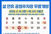 한방통신사 신유철기자 기자 | 파주도시관광공사는 12일, 2026년 설 명절을 맞아 시민과 고향을 방문하는 귀성객의 교통편의를 위해 공영주차장 24곳(부설주차장 시청, 의회, 금촌2-17 포함)을 오는 14일(토)부터 18일(수)까지 5일간 무료로 개방한다고 밝혔다. 설 연휴기간 동안 시민들이 안전하고 쾌적하게 주차장을 이용할 수 있도록 사전점검을 마쳤고 효율적인 인력 배치와, 비상연락 체계 유지를 통해 이용 불편을 최소화할 계획이다. 공사 조동칠 사장은 “시민들과 방문객의 주차 불편을 최소화하고, 안전한 시설관리를 통해 편안한 명절 연휴가 될 수 있도록 최선의 노력을 다하겠다”라고 말했다. [뉴스출처 : 경기도 파주시]