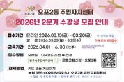 한방통신사 신유철기자 기자 | 광주시 오포2동 주민자치센터는 오는 4월 1일 개관을 앞두고 3월 13일부터 20일까지 ‘2026년 2분기 주민자치 프로그램’ 수강생 924명을 선착순 모집한다. 오포2동 주민자치센터는 지난 2022년 오포읍에서 분동된 이후 3년 만에 양벌로 336에 새롭게 조성됐다. 시는 오는 26일 개관식을 개최한 뒤 4월 1일부터 본격적인 운영에 들어갈 예정이다. 이에 따라 그동안 인근 지역 시설을 이용해야 했던 주민들의 불편이 해소되고 생활권 내에서 주민자치 프로그램을 이용할 수 있는 여건이 마련됐다. 이번 2분기 프로그램은 4월부터 6월까지 3개월간 운영되며 건강·스포츠 강좌, 문화·예술 강좌, 교육·기술 강좌, 어린이 강좌 등 총 41개 과정으로 구성됐다. 수강 신청은 3월 13일부터 20일까지 광주시 주민자치센터 누리집을 통한 온라인 접수 방식으로 진행된다. 다만, 정원 미달 강좌에 한해 3월 23일부터 25일까지 오포2동 주민자치센터에서 현장 방문 접수도 추가로 실시할 계획이다. 수강료는 강좌별로 3개월 기준 5만4천 원에서 7만2천 원까지이며, 국가유공자와 장애인, 한