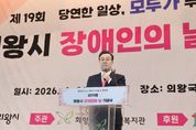 한방통신사 신유철기자 기자 | 의왕시는 4월 21일 국민체육센터에서 관내 장애인과 가족, 내빈 등 1,000여 명이 참석한 가운데 ‘제19회 의왕시 장애인의 날 기념행사’가 성황리에 개최됐다고 밝혔다. 희망나래장애인복지관 주관한 이날 행사는 장애인의 날을 맞아 ‘당연한 일상, 모두가 누릴 수 있도록’이라는 표어 아래, 장애인과 비장애인이 함께 소통하는 화합의 장을 마련하고 더불어 살아가는 사회 분위기 조성을 위해 추진됐다. 이날 행사는 식전 축하공연으로 △농아인협회 의왕시지회 수어공연 △퓨전 플루티스트 서가비의 공연이 펼쳐졌으며, 이어 (사)경기도 신체장애인복지회 의왕시지회 김재진, 이지나 씨의 장애인 인권헌장 낭독과 기념식, 유공자 표창 등이 진행됐다. 특히, 으뜸 장애인상에서는 ‘모범장애인 부문’에 안광례 씨, ‘장애인봉사 부문’에 황순규 씨가 각각 수상해 큰 박수를 받았다. 또한, 장애인복지 유공자 시상에서는 △박미애(농아인협회) △강경아(희망나래장애인복지관) △권희선(의왕장애아재활치료교육센터) △김희수(해온장애인보호작업장) △김수종(의왕시청 노인장애인과) △우채운(의왕시장애인주간보호시설) △