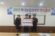 한방통신사 신유철기자 기자 | 여주시 북내면 후계농업경영인회는 지난 20일, 북내면 행정복지센터를 방문해 관내 어려운 이웃을 위한 이웃돕기 성금 100만 원을 전달했다. 이번 기탁은 회원들이 뜻을 모아 개최하는 연시총회를 앞두고, 지역사회의 소외된 이웃들이 따뜻한 새해를 맞이하기를 바라는 마음에서 진행됐다. 북내면 후계농업경영인회는 매년 잊지 않고 어려운 이웃을 위한 성금을 기탁하며 지역사회의 귀감이 되고 있다. 전달된 성금은 경기사회복지공동모금회를 통해 북내면 내 저소득층 및 복지 사각지대 가구를 지원하는 사업에 사용될 예정이다. [뉴스출처 : 경기도 여주시]