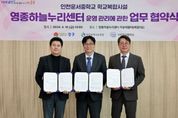 한방통신사 신유철기자 기자 | 영종구 출범 원년을 맞아 올해 새롭게 개관한 ‘영종하늘누리센터’의 안정적·체계적 운영을 위해 인천시 중구가 인천시 교육청, 운서중학교와 손을 맞잡았다. 김정헌 인천 중구청장과 도성훈 인천시 교육감, 김성오 운서중학교장은 10일 오후 영종하늘누리센터 하늘배움터에서 이러한 내용의 ‘인천운서중 학교복합시설(영종하늘누리센터)의 운영과 관리에 관한 업무 실시협약’에 서명했다. ‘영종하늘누리센터’는 인천 중구가 운서중학교 부지 내 일부를 무상으로 제공받아 하늘초롱길 69 일원에 지하 1층, 지상 4층 연면적 5,635㎡ 규모로 건립한 ‘학교복합시설’이다. 지난 2024년 6월 첫 삽을 떠 올해 1월 건립 공사를 모두 마쳤으며, 3월 준공식을 개최한 후 현재는 운영 본격화에 행정력을 집중하고 있다. 특히 다함께돌봄센터 7호점(거점형), 육아종합지원센터, 가족센터, 영종하늘누리 작은도서관이 지난 2월부터 입주해 다양한 복지·문화 서비스를 구민들에게 제공하고 있다. 이번 협약은 지난 2021년 영종하늘누리센터 건립을 위해 체결한 기본 업무협약의 내용을 한층 더 구체화함으