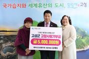 한방통신사 신유철기자 기자 | 고성군은 12월 5일, 재부산고성향우회 김계자 자문위원이 고향사랑기부금 500만 원을 기탁했다고 밝혔다. 작년에 이어 올해에도 고향사랑기부금을 통해 선행을 이어온 김계자 자문위원은 “고성군에 도움을 줄 수 있는 기회가 생겨서 감사하고, 고향사랑기부금이 뜻깊게 쓰일 수 있도록 노력해 달라”라며, “앞으로도 고성에 대한 지속적인 관심을 갖고 도울 수 있는 방향을 모색하겠다”라고 소감을 밝혔다. 김종춘 인구청년추진단장은 “기회가 닿을 때마다 고성군 취약계층과 군민의 복리증진을 위해 기부해 주시는 김계자 자문위원의 깊은 뜻을 간직하겠다”라며, “소중한 기부는 지역에 큰 힘이 되어 군민 삶의 질 향상과 지역 발전에 기여할 것이다.”라고 말했다. 한편, 고향사랑기부제는 주민등록상 주소지를 제외한 지자체에 연간 2,000만 원까지 기부하고 세액공제(10만 원까지 전액 공제, 초과분은 16.5% 공제)와 답례품(기부금 30% 이내) 혜택을 받는 제도이다. 고향사랑기부금은 사회적 취약계층의 지원 및 청소년 육성·보호, 주민의 복리증진 등을 내용으로 하는 고향사랑기금사업에 사용되며 20