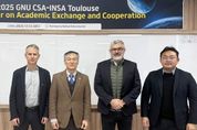 한방통신사 신유철기자 기자 | 경상국립대학교 우주항공대학은 12월 3일 가좌캠퍼스 항공우주산학협력관에서 프랑스 국립응용과학원(INSA Toulouse, 인사툴루즈)와 ‘우주항공 연구교류회 및 특강’을 개최했다. 이날 행사에서는 인사툴루즈의 월터 에스코피에(Walter Escoffier) 교수(물리학자, INSA 국제협력처장), 장 이브 푸르니올(Jean-Yves Fourniols) 교수(전자·공학, 기업협력·평생교육 디렉터)를 초청했다. 인사툴루즈는 프랑스 툴루즈에 위치한 대표적인 공학·과학 전문 INSA 그룹 소속의 고등교육기관으로, 연간 3600명의 엔지니어를 배출하며 10만 명이 넘는 전 세계 네트워크를 보유한 유럽 최고 수준의 공학 교육기관이다. 이번 행사는 ▲CSA–인사툴루즈 간 연구협력 간담회 ▲초청 특강(월터 에스코피에) ▲자유토론 및 질의응답 ▲CSA 연구실 투어 순으로 국제적 공동연구, 교육과정 소개를 통한 학생과의 소통 등 종합 프로그램으로 구성했다. 또한 권진회 총장과 간담회도 진행하여 경상국립대학교-인사툴루즈 간의 국제 협력 네트워크를 한층 강화하는 계기도 마련했다.