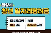 한방통신사 신유철기자 기자 | 경남 밀양시는 취업 초기 청년들의 안정적인 지역 정착을 지원하기 위해 오는 27일까지 ‘2026년 청년 일자리 장려금’ 지원 대상자 30명을 모집한다. 이 사업은 사회초년생인 청년들의 재정 안정을 돕고, 지역 소재 기업에 장기근속을 유도해 지역 정착을 도모하는 사업이다. 지원 자격은 밀양시에 주소를 둔 18세 이상 39세 이하 청년으로, 2025년 1월 1일 이후 관내 소재 기업체(상시 근로자 3인 이상)에 정규직으로 취업하거나 전환된 근로자다. 선정된 청년에게는 분기별 50만원씩, 1년간 최대 200만원이 지원된다. 단, 내일채움공제에 참여하고 있거나 과거에 동일한 장려금을 지원받은 적이 있는 경우 등은 제외된다. 신청은 오는 27일까지이며, 자세한 사항은 밀양시 대표 누리집 새소식란을 확인하거나 밀양시 인구정책담당관으로 문의하면 된다. 시 관계자는 “이 사업을 통해 청년인구 유출 방지와 기업의 고용안정을 기대한다”며 “앞으로도 청년들이 밀양에 머물며 행복하게 일할 수 있는 양질의 일자리 환경을 만드는 데 최선을 다하겠다”고 전했다. [뉴스출처 : 경